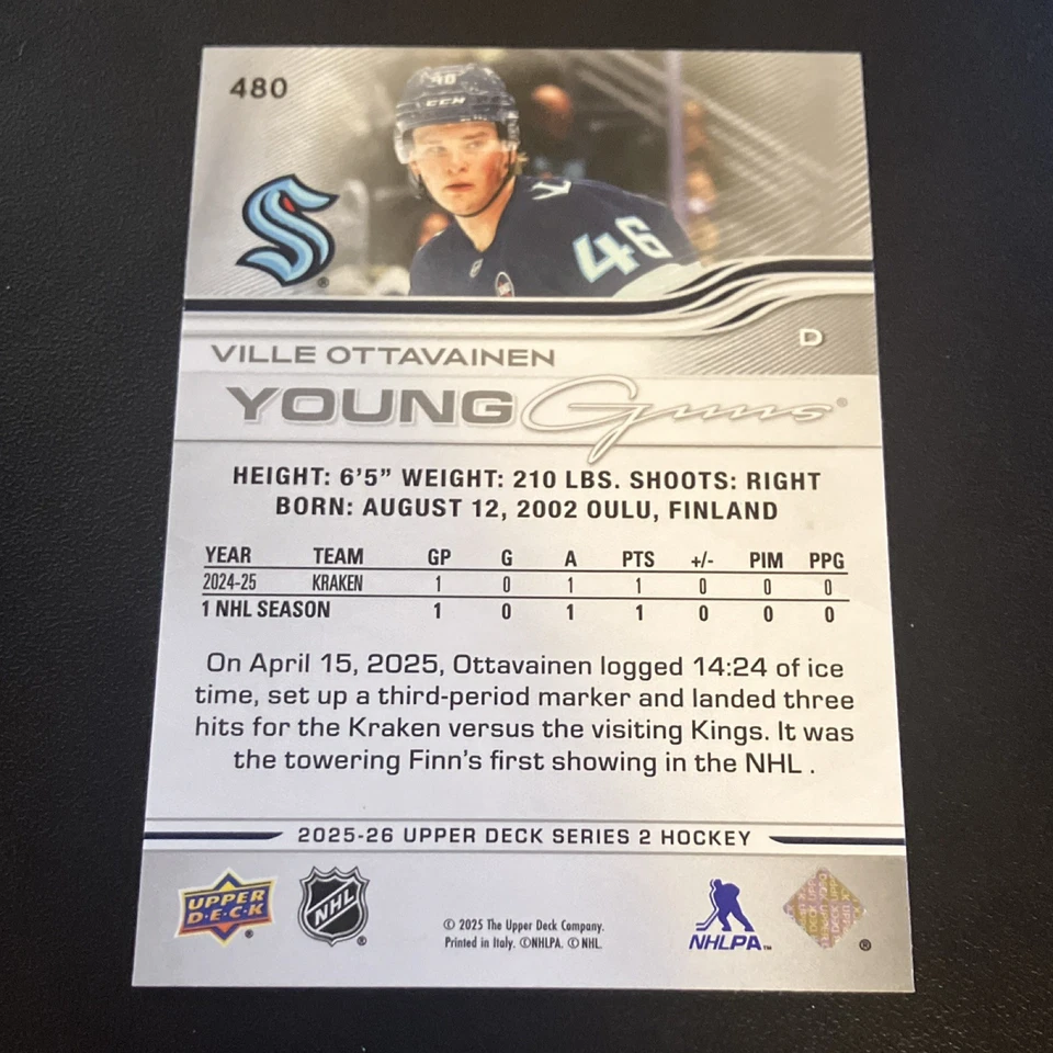2025-26 Upper Deck Series 2 Young Guns Rookie Ville Ottavainen Kraken #480