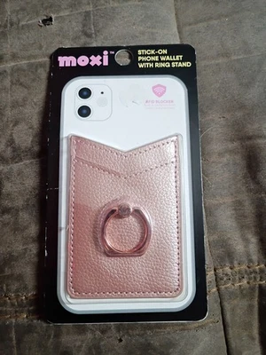 moxi | Stick-On Phone Wallet With Ring Stand - Silver - RFID Blocker - New