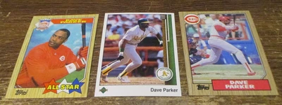 3) Dave Parker baseball cards 1987 Topps #600 #691 Reds - 1989 UD #605 A's - HOF