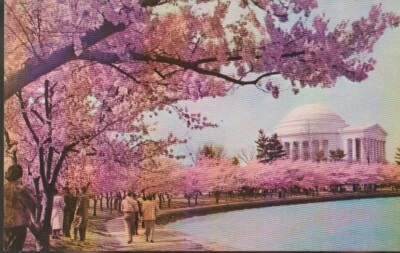 Cherry Blossom Time Jefferson Memorial Washington DC Historic Vintage Postcard