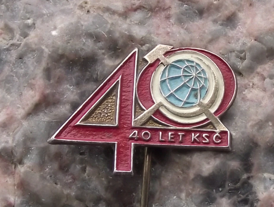 1961 KSC Czechoslovakia Communist Party 40th Anniversary Hammer Sickle Pin Badge