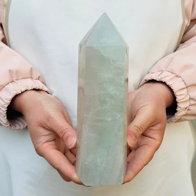 1564G Natural fluorite obelisk quartz crystal energy column Reiki healing