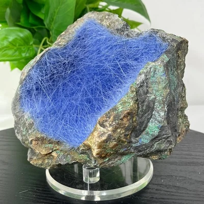 4.87LB Beautiful and rare blue needle mineral home decoration