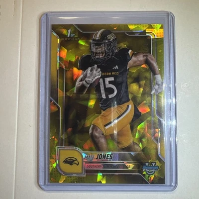 MATT JONES 2025 BOWMAN UNIVERSITY CHROME 1ST SAPPHIRE YELLOW /75