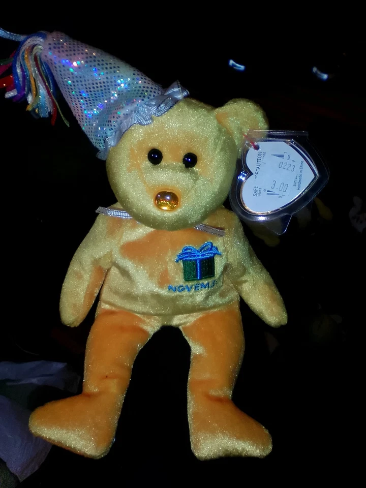 TY Beanie Baby - NOVEMBER the Teddy Birthday Bear (w/ hat) (9.5 inch) - MWMTs