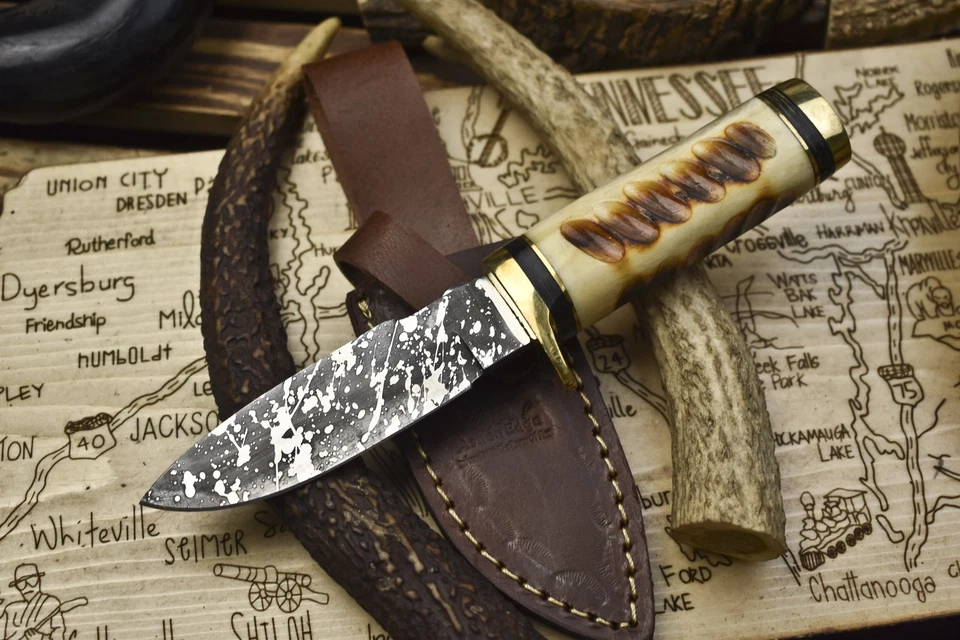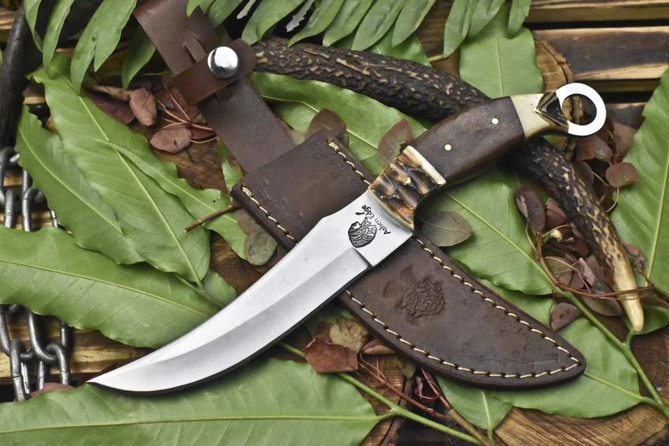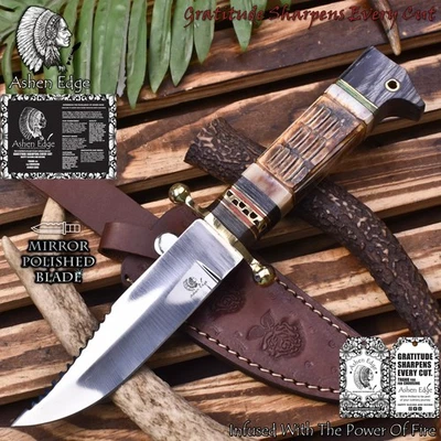 Ashen Edge Custom Forged Skinner Knife AUS-10 Steel Bone Brass Guard Sports