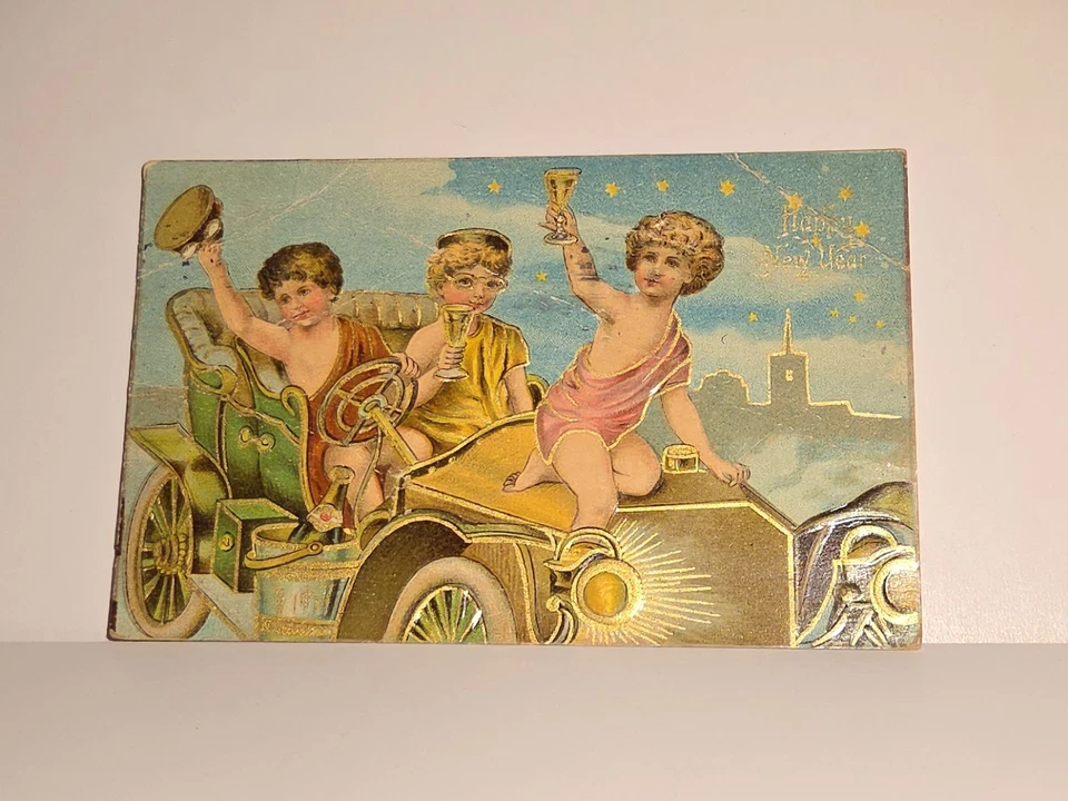 Happy New Year Antique Car Posted to Miller Winston-Salem North Carolina 1910