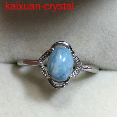 Larimar Gemstone Cabochon Atlantis Stone Blue Pectolite Gemstone Adjustable Ring