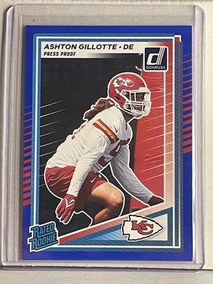 2025 Donruss Ashton Gillotte Blue Press Proof Rated Rookie #353 KC Chiefs