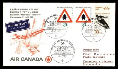 Mayfairstamps Germany Flight 1971 Frankfurt to Vancouver Boeing 747 Jumbo Cover