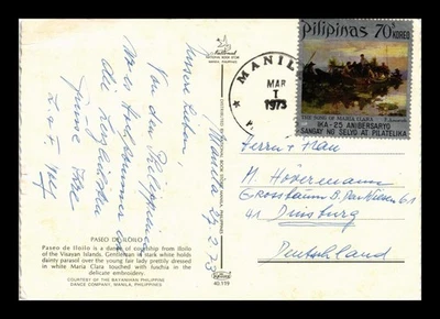 Dr Jim Stamps Philippines Stamped Continental Size Postcard 1973 Postmark