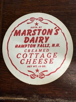 Rare! Marston’s Dairy 4” Cottage Cheese Lid, Hampton Falls NH, New Old Stock