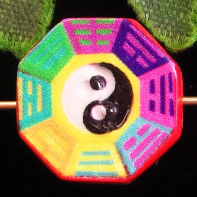 14x6mm Carved Rainbow Red Cinnabar Eight Diagrams Pendant Bead H92341