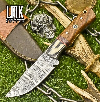 LMK Hand Crafted Skinner Knife Twist Damascus Walnut Wood Wooden Bolster Hunter