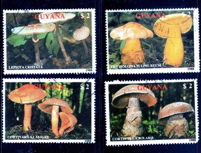 GUYANA #2010 a-d 1989 MUSHROOMS MINT VF NH O.G CTO