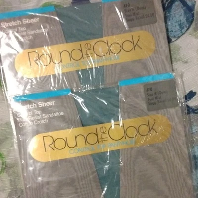 Vintage Round The Clock Pantyhose Teal Mist Size A Small Two Pair