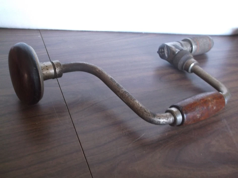 Vintage STANLEY 928 10” Manual Reversible Ratcheting Drill, Wooden handles, USA