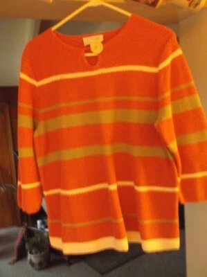 C.J.Banks - Women's Knit Top / Sweater, Size 1X, Pretty Peach Grey & White
