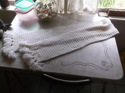 Snow White Knit Scarf, Ball Fringed Soft 8" x 78"