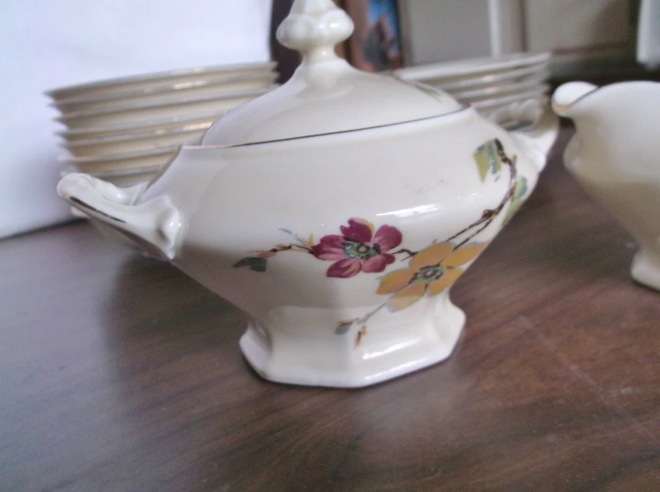 24 pc Set of Antique Porcelain China, AMC Auguste Mouzin, Germany, Gold Rims