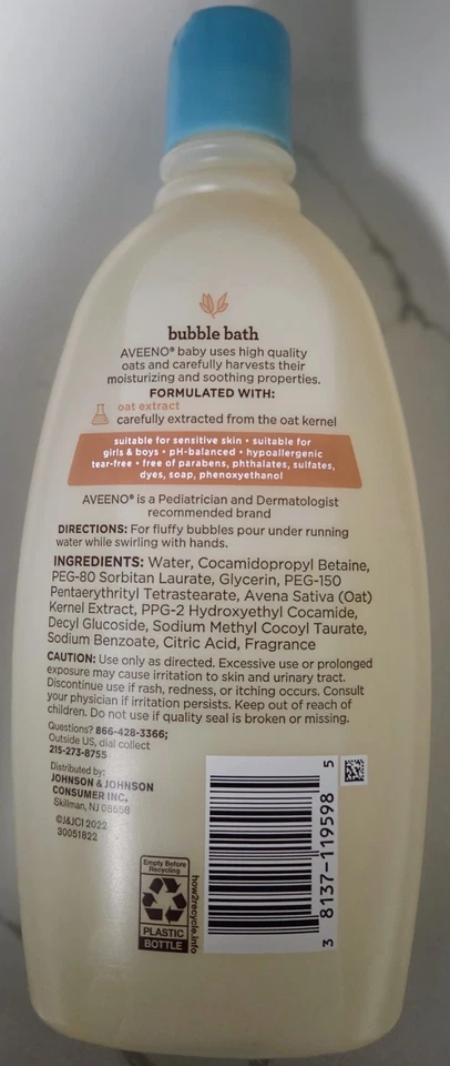 Aveeno Baby Therapy Moisturizing Bubble bath Wash with oat extract ,8 oz