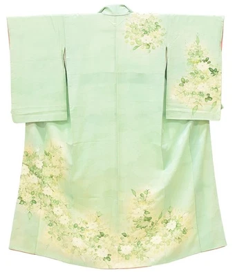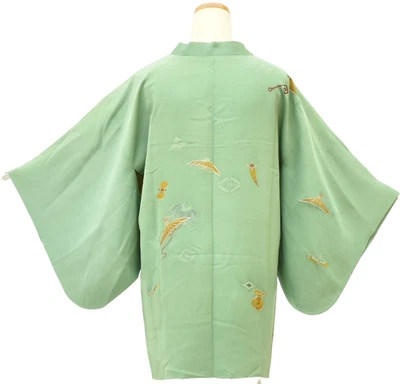 JAPANESE VINTAGE KIMONO SILK JACKET ROBE HOMONGI WEDDING GREEN 3mt2366P/