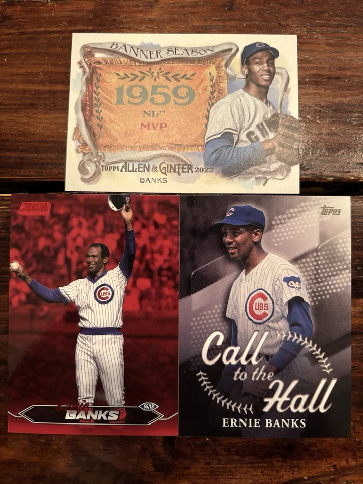Ernie Banks 3 Card LOT! A&G / Red Foil / Call To The Hall - Chicago Cubs