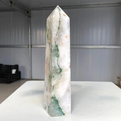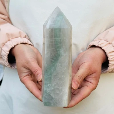 1343G Natural fluorite obelisk quartz crystal energy column Reiki healing
