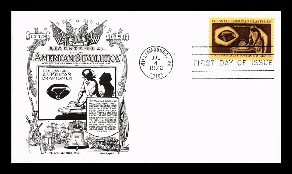 US COVER HAT MAKER COLONIAL AMERICAN CRAFTSMEN FDC LOWRY ARISTOCRATS CACHET