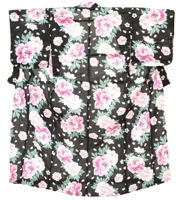 JAPANESE KIMONO VINTAGE SUMMER ROBE JACKET / YUKATA BLACK FLOWER 3mt2128