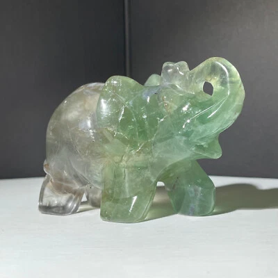 339G Natural Fluorite Quartz Crystal Quartz Hand Carved elephant Healing