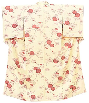 JAPANESE KIMONO VINTAGE SILK ROBE JACKET KOMON PLUM WHITE 3mt2043P