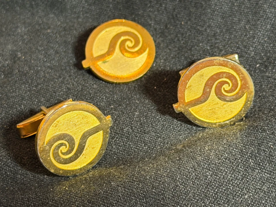 1968 SAN ANTONIO HEMISFAIR WORLD'S FAIR CUFFLINKS & LAPEL PIN SET GOLD TONE NICE