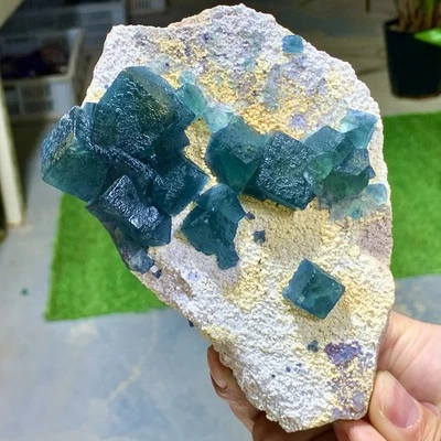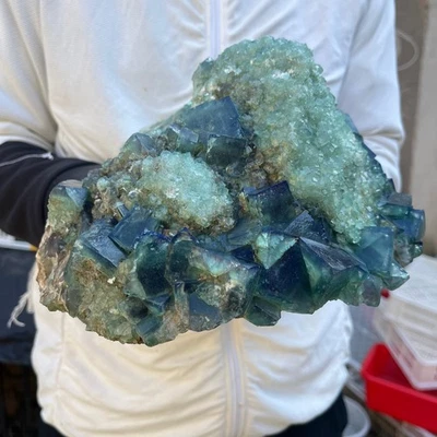7.78LB Natural green cubic fluorite quartz crystal mineral specimen