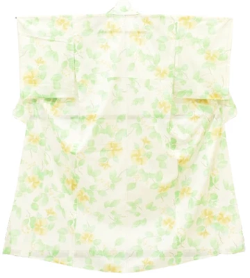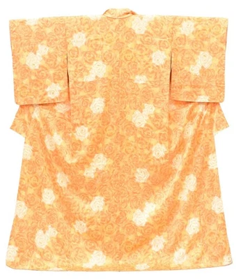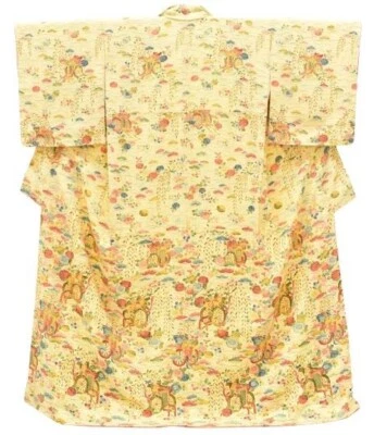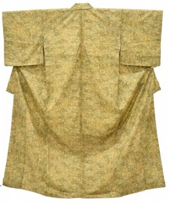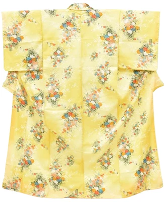 JAPANESE KIMONO VINTAGE ROBE KOMON JACKET FLOWER YELLOW 3mt2058P