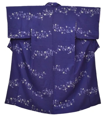 JAPANESE KIMONO VINTAGE SILK ROBE JACKET KOMON FLOWER PURPLE BLUE 3mt2070