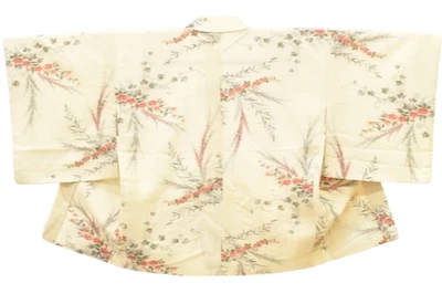 03068# JAPANESE KIMONO / HAORI / SILK / FLORAL PLANTS
