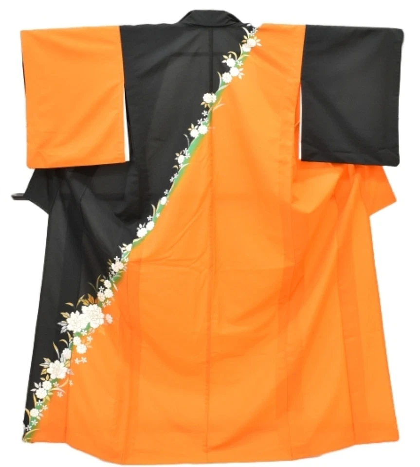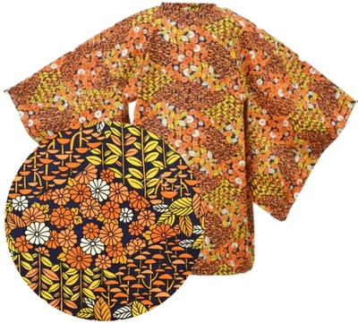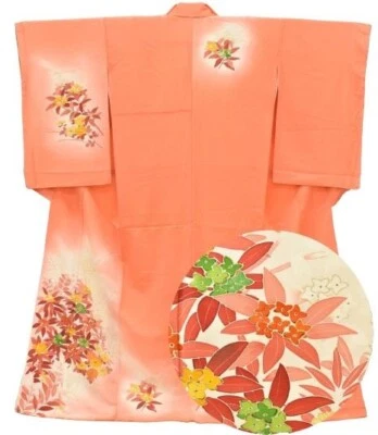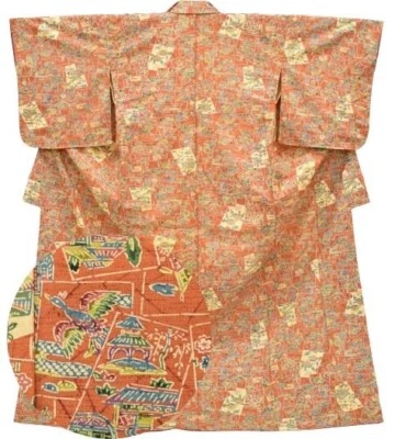 JAPANESE VINTAGE KIMONO SILK JACKET ROBE KOMON FLOWER ORANGE 3mt2265P/