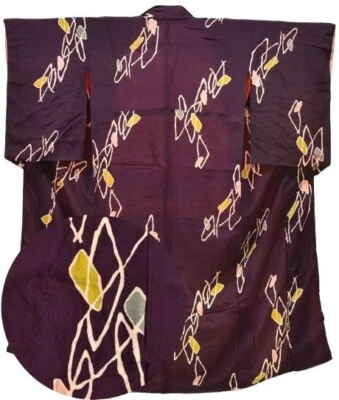 JAPANESE KIMONO VINTAGE ANTIQUE SILK ROBE JACKET KOMON PURPLE 3mt1891P/