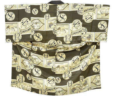 JAPANESE VINTAGE KIMONO SILK ROBE JUBAN MEN SAMURAI REMAKE JACKET BLACK 5mt2417P