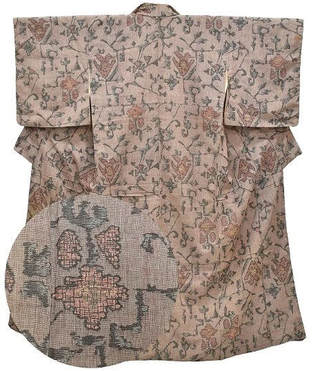 JAPANESE KIMONO VINTAGE SILK JACKET ROBE / TSUMUGI FLOWER 3mt1120