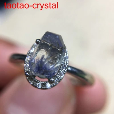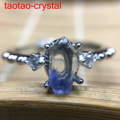 7.8Ct 100%Natural Blue Rare Dumortierite Quartz Rutilated Adjustable Ring J300