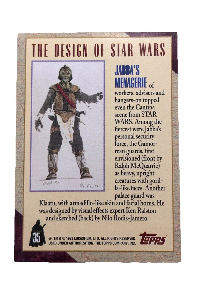 Excellent: Vintage 1993 topps Star Wars Galaxy Jabba’s Menagerie Trading Card