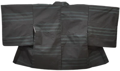 JAPANESE KIMONO VINTAGE SILK ANTIQUE JACKET ROBE TSUMUGI BLACK 3mt1914P