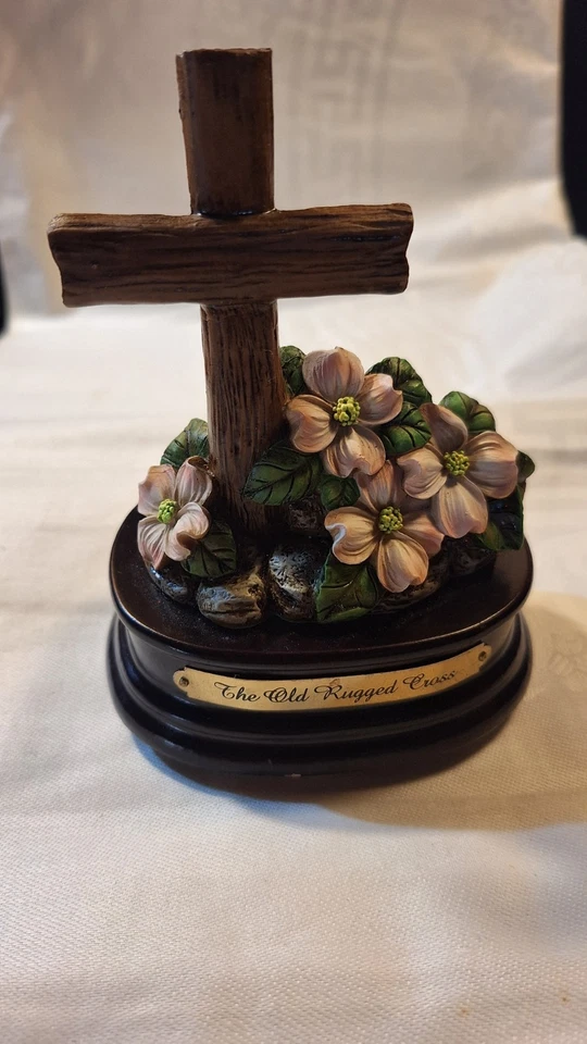 Vintage Dicksons Make a Joyful Noise Cross Music Box plays The Old Rugged Cross
