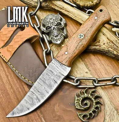 LMK Hand Crafted Skinner Knife Twist Damascus Walnut Wood Tactical Collectible