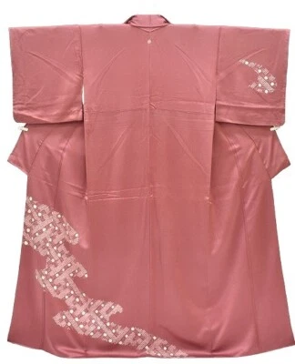 JAPANESE KIMONO VINTAGE SILK ROBE JACKET HOMONGI SHIBORI PINK 3mt1557P/