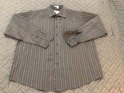 Pronto Uomo Mens Button Up Shirt Gray Striped Long Sleeve Flip Cuff Size XXL