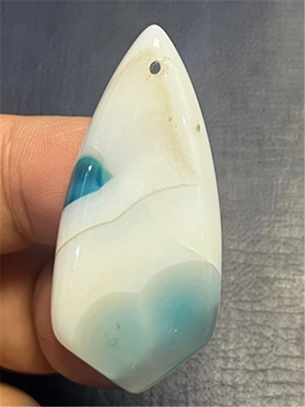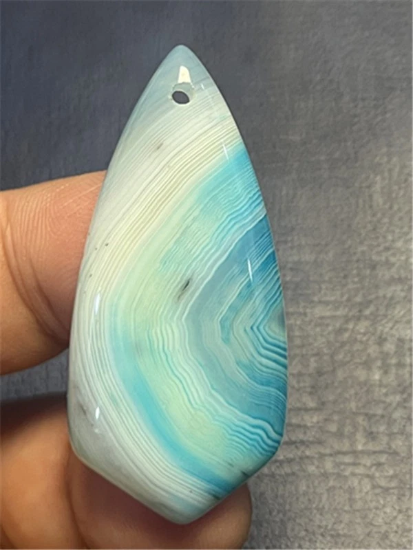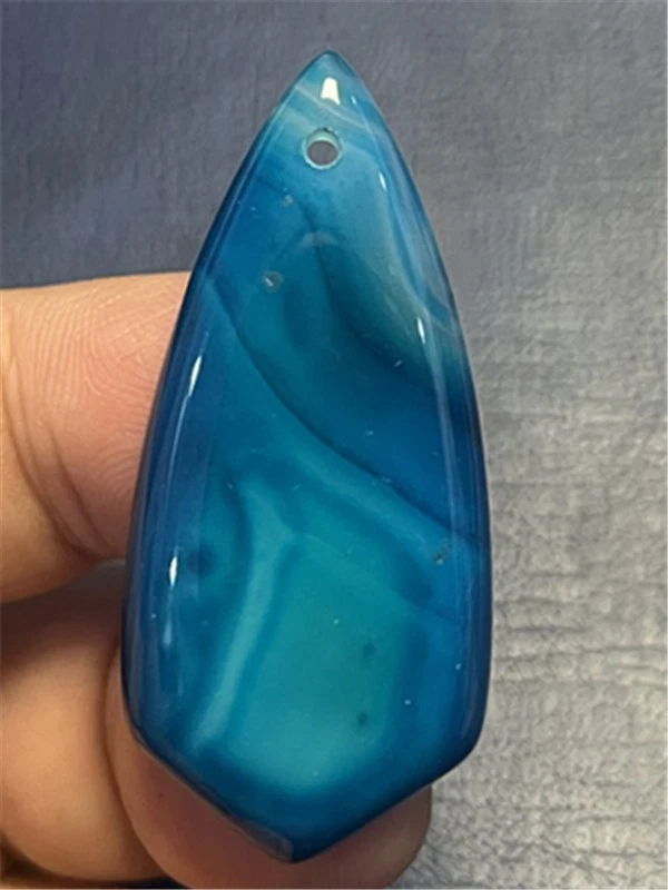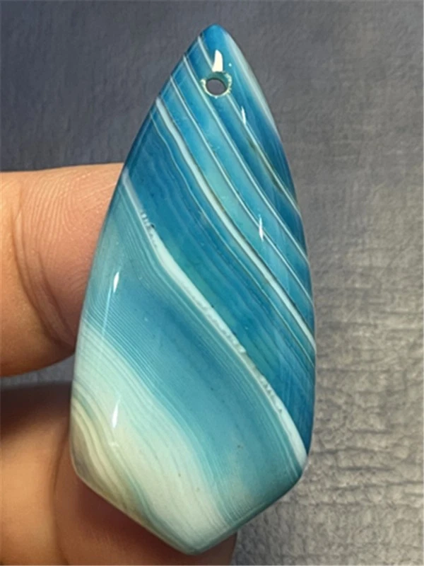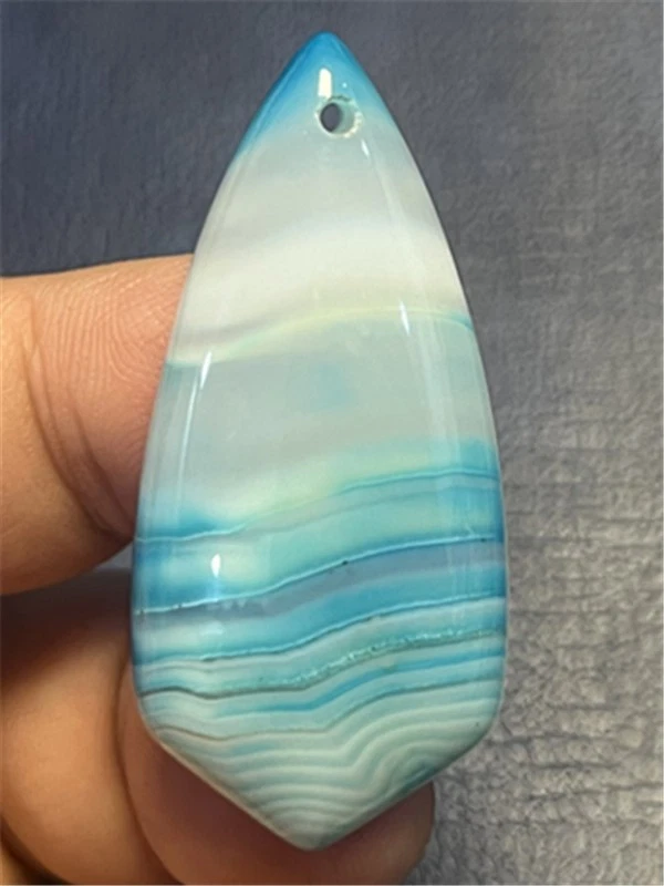 KU87956 47x22x7mm Blue/white Stripes Agate Shield Pendant Bead