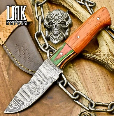 LMK Custom Forged Skinner Knife Twist Damascus Hard Wood EDC Limited Edition